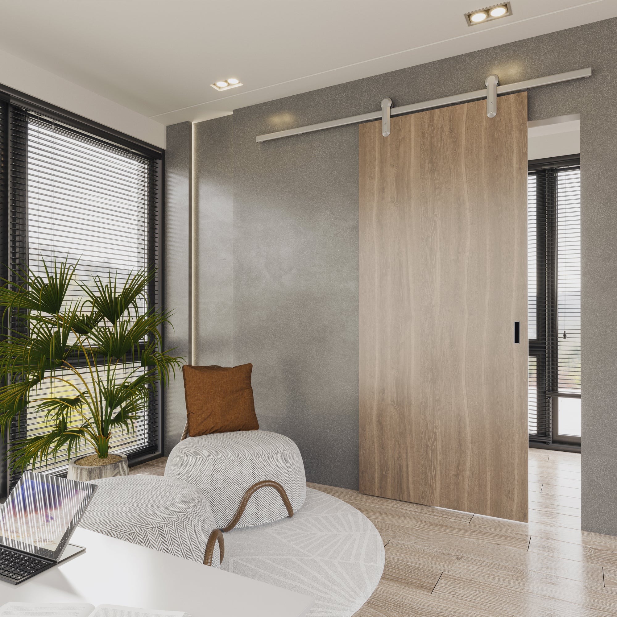 Traditional swing doors need clearance space, barn doors glide effortlessly instead. Ideal for lofts, studios, and spaces where movement should be fluid and unobtrusive, the system allows open transition without losing privacy or warmth. Bosko refines the mechanism for quiet operation and minimalist aesthetics, making it perfect for both contemporary homes and boutique commercial environments.