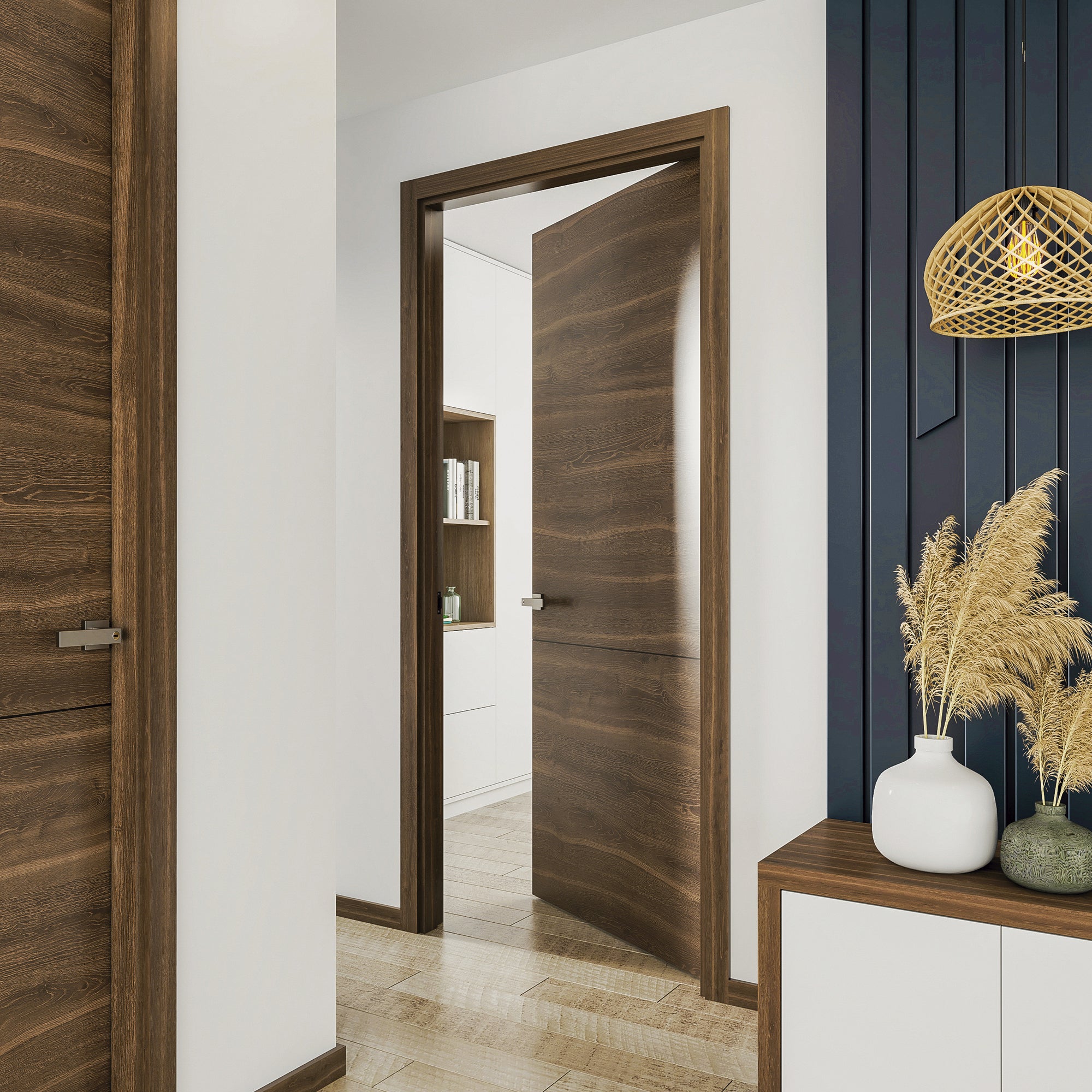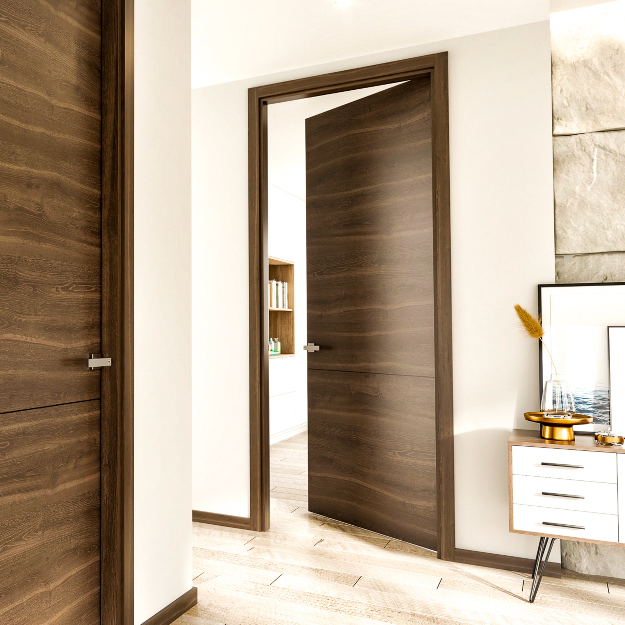 Most traditional swing doors feel bulky or disconnected from the architecture around them. Bosko’s system refines the classic format, engineered casings create a perfect junction between wall and frame, concealing imperfections and ensuring seamless alignment. The result: a door that opens with precision and closes with quiet assurance.